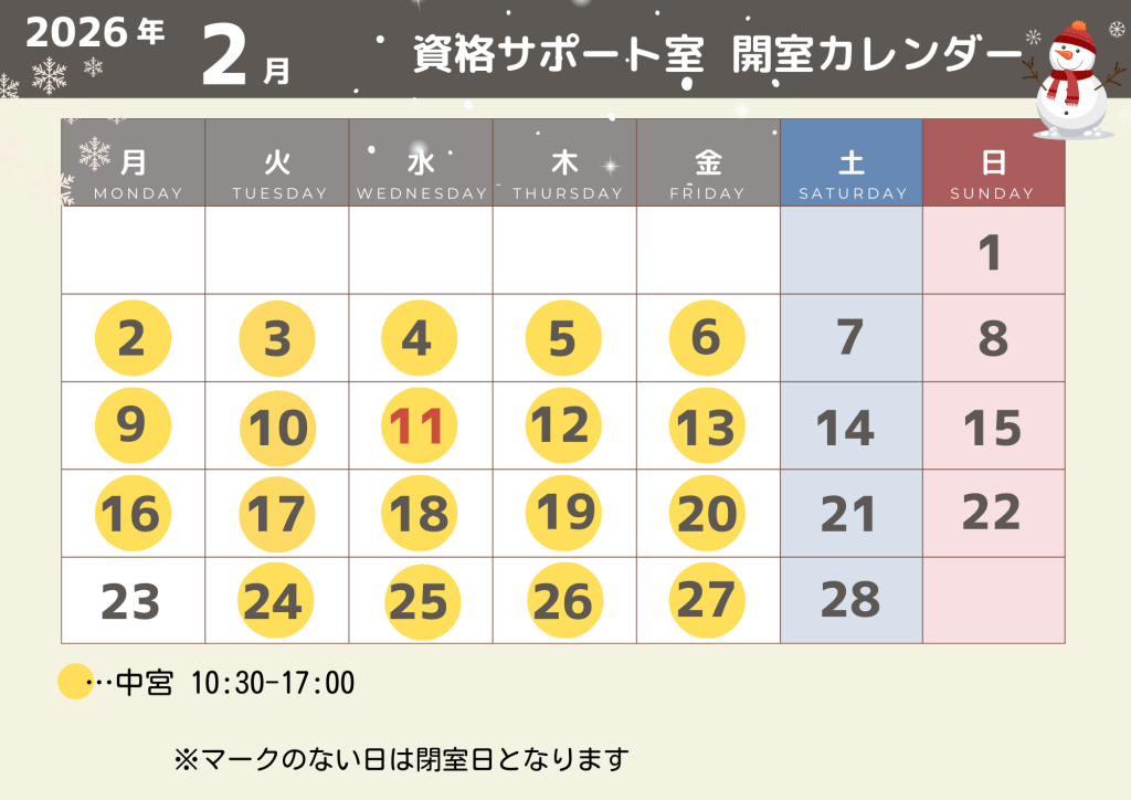 ★2月開室日のご案内★