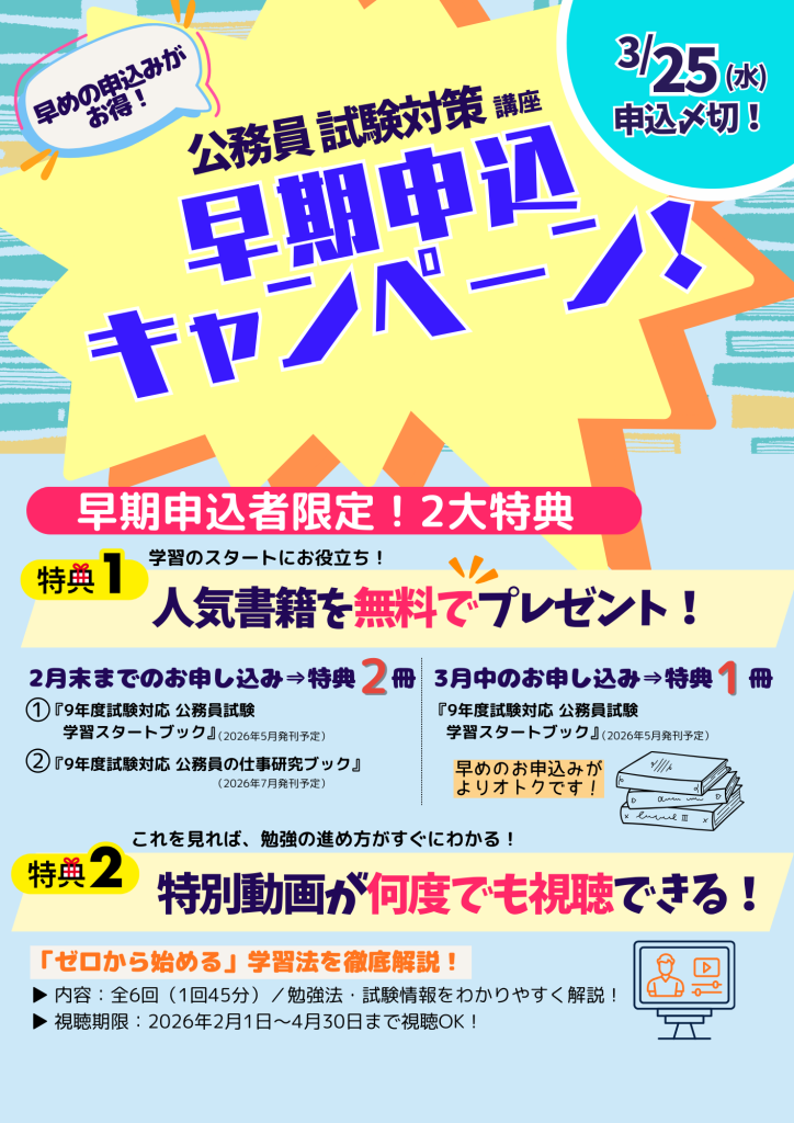 ★新3年生対象!公務員講座 早期申込キャンペーンのご案内★