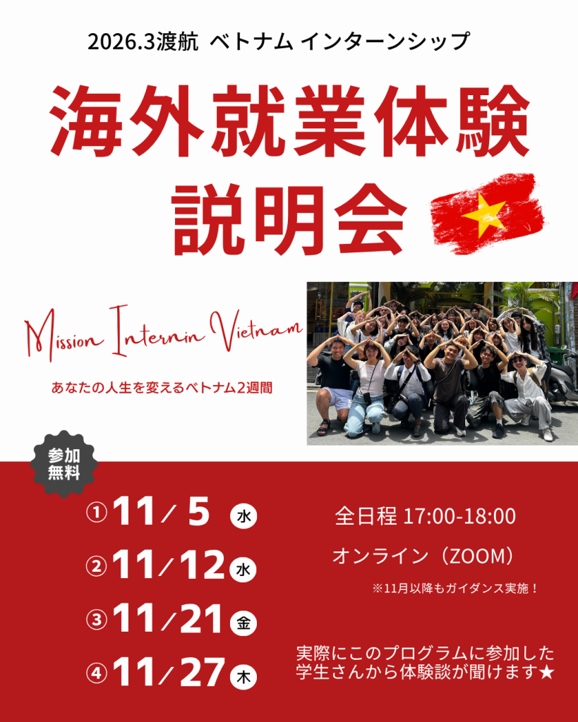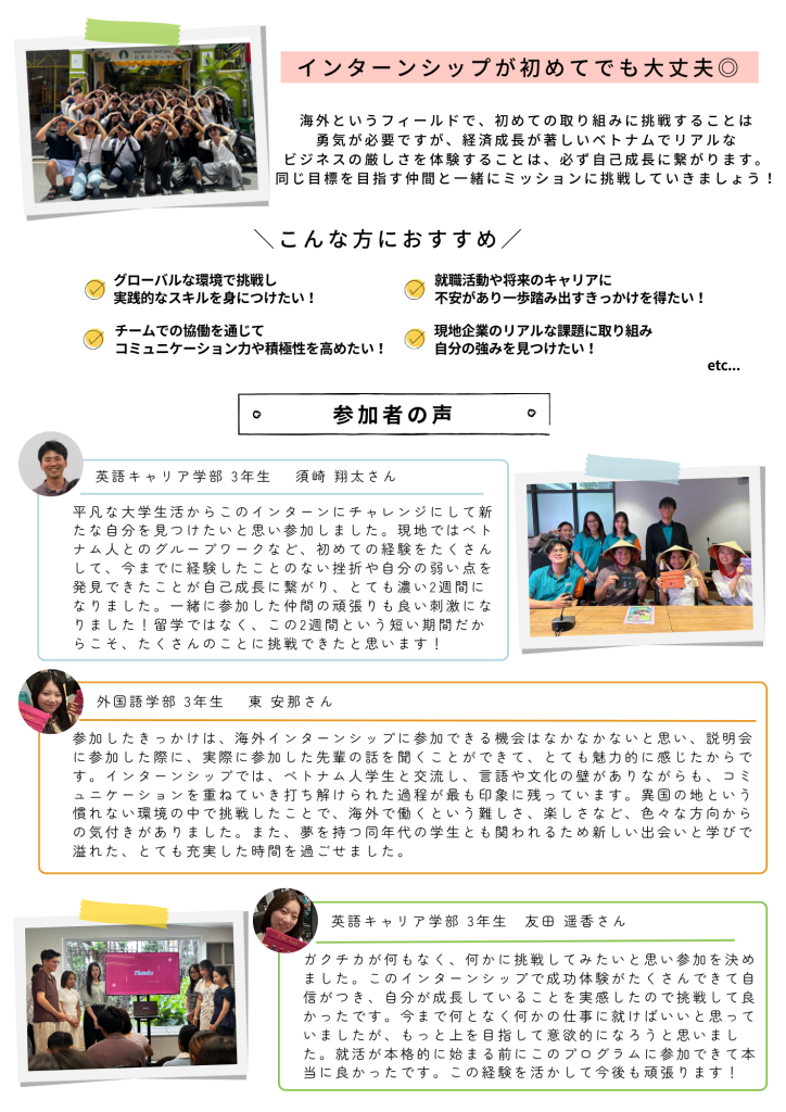 実際にこのプログラムに参加した学生さんから体験談が聞けます★